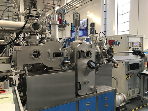 | 法国PLASSYS-BESTEK SAS公司生产的超导约瑟夫森结制备设备(型号为MEB550 SL3)包括三个互联的超高真空腔体,其中进样腔与真空互联主管道连接且具有Ar离子刻蚀(IBE)功能;与之连接的蒸镀腔则利用电子束加热金属源而进行物理气相沉积(PVD);与蒸镀腔相连的是氧化腔,其主要的功能是能进行金属表面的可控高精度高均匀性氧化。进样腔、蒸镀腔和氧化腔的极限真空度分别可达2.0 x10-8 Torr, 2.2 x10-10 Torr和 2.0 x10-9 Torr。进样腔和蒸镀腔样品台均可以面内旋转和倾斜。进样腔配备一个KRI离子枪和一个氩气气路,用于对样品进行Ar离子刻蚀(IBE)以去除表面氧化层。蒸镀腔电子枪功率为6 kW,配备5个15cc坩埚,填装1个Ti源,4个Al源。氧化腔支持样品在氧气气氛下进行静态和动态氧化;配备量程20sccm和200sccm的两个质量流量控制器以及一个针形阀,可用于低压力、高压力和超高压力范围的氧化。三个腔体间样品的传送采用两个分别安装在进样腔和氧化腔上的电动传样杆实现,所有工艺均可全自动化电脑控制执行和半自动人工操作。该设备主要用于基于铝的超导约瑟夫森结的制备,亦可进行样品表面清洗、表面刻蚀以及金属薄膜(仅限于Ti、Al和Ta)沉积。该设备可用于超导薄膜沉积、超导空气桥制备、超导量子干涉器件(SQUID)、约瑟夫森参量放大器(JPA,或JTWPA等)以及各类超导量子比特芯片制备,专用于超导电子学和超导量子计算等领域。